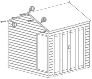Attach the fascia’s and finial’s to the the front and back of the building using 12x40mm screws.