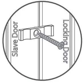 Secure the barrel bolts to the top & bottom of each side door and the slave door using 6 x 10 mm screws.