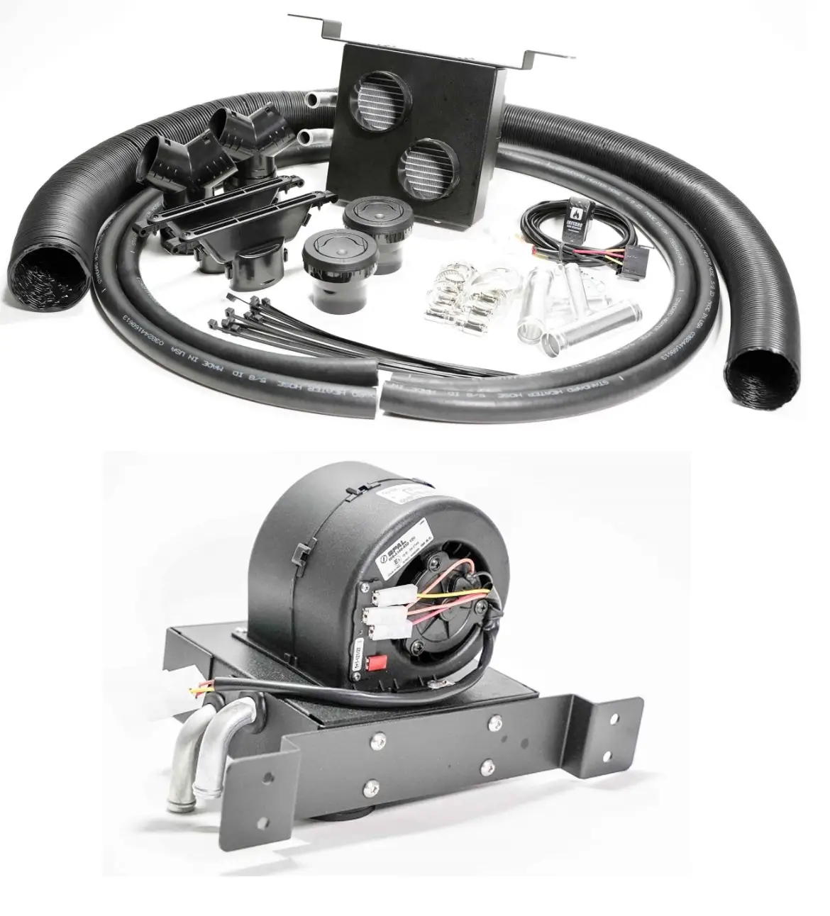 - Connect the 2 runs of duct to the heater box and secure with the zip ties provided.