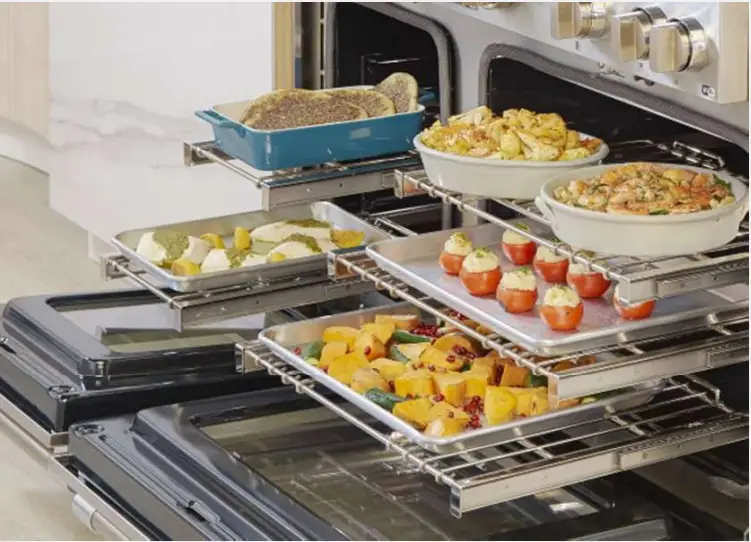 - Full Access® telescopic racks outfit each oven-one on the 30″ units, and 3 on all others (main oven)