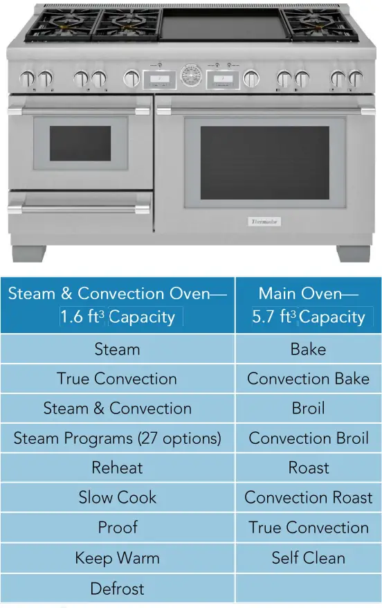 - Steam & Convection Oven as secondary oven (48″ and 60″ option)