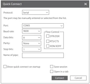 Step 3: Set the parameters of the HyperTerminal: 9600 bits per second, 8 data bits, no parity, 1 stop bit and no fiow control.