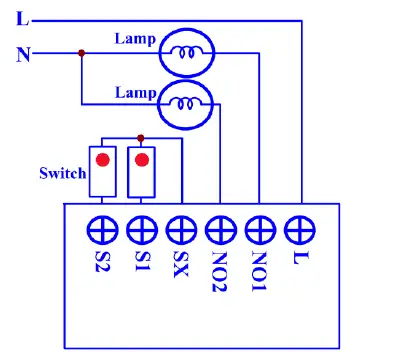 - If Edge-Toggle mode has been set, and the S1 S2 is connect to normal bi-stable switch, every time when change the state of the wall switch will also swap the state of Relaya1 or Relay2