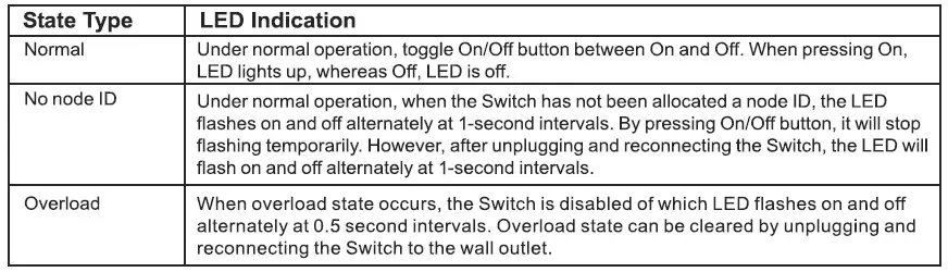 It is able to detect current wattage(5-3000W) and overload wattage(3010-3300W) of connected lights or appliances. When detecting overload state, the switch will be disabled and its on/off button will be lockout of which LED will flash quickly. However, unplug and re-connect the switch will reset its overload condition to normal status.