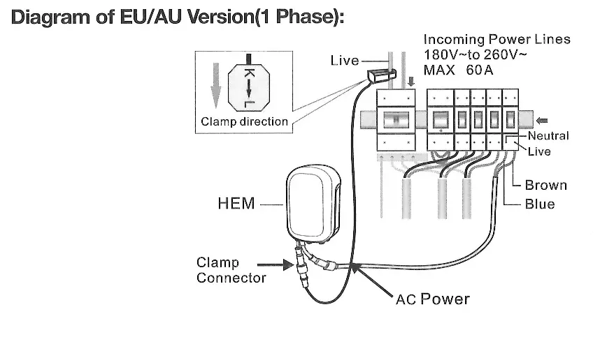 - Wire the AC Wire into one breaker. The brown wire is Live, the blue wire is neutral.