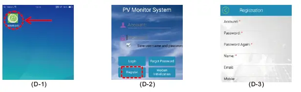Open KDM software D-1, first use KDM monitoring system, please click Register D-2, register KDM account and save D-3