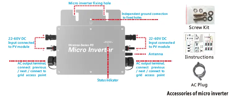 - Before installing or using Kaideng Micro Inverter, please read all instructions and technical instructions and the warning mark system and photovoltaic array on Kay Microinverter
