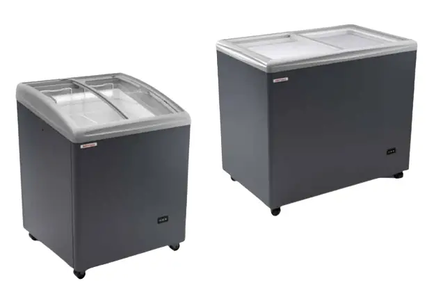 Due to the reduced height ice cream is easily accessible. The glass sliding lids are opening and closing smoothly.