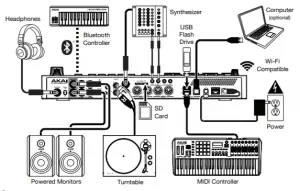 - Power Input: Use the included power adapter to connect MPC Live II to a power outlet.