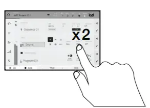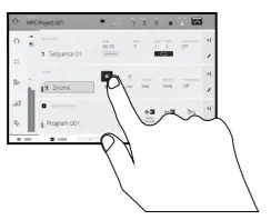two Mute Modes. Press and hold Shift and then press this button to enter Sample Edit Mode where you can edit your samples using various functions and processes. - Next Seq / XYFX: Press this button to view Next Sequence Mode where you can trigger different sequences simply by playing the pads. This is useful for live performances, letting you change a song’s structure in real time. Press and hold Shift and press this button to view XYFX Mode, which turns the touchscreen into an XY pad where each axis represents the range of an effect parameter. As you move touch or move your finger on the touchscreen, the current position will determine the current value of the two parameters. You can use this mode to create interesting effect automation on your tracks.