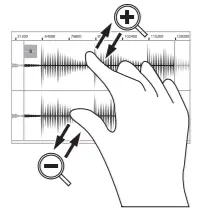 Spread two fingers to zoom in (into a section of a waveform, for example). Pinch two fingers to zoom out.