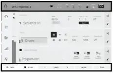 - Mix / Sampler: Press this button to view the last used Mixer Mode, either Track Mixer (default) or Pad Mixer. In Track Mixer Mode, you can set levels, stereo panning, and other settings for your tracks, programs, returns, submixes, and masters. In Pad Mixer Mode, you can set a program’s levels, stereo panning, routing, and effects. Pressing the button multiple times will toggle between the two Mixer Modes. Press and hold Shift and then press this button to view the Sampler, where you can record audio samples to use in your projects.