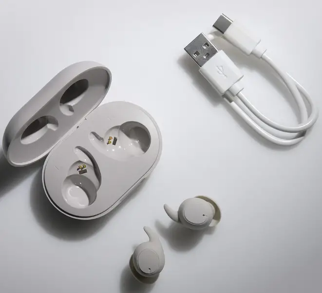 - Put the earbuds inside the charging case.