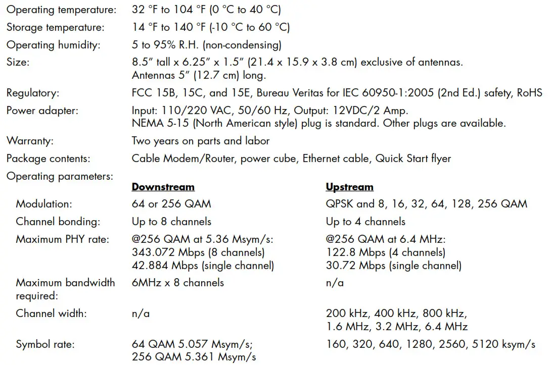 - 8 downstream and 4 upstream cable modem channels for downstream data rates up to 343 Mbps and upstream data rates to 123 Mbps