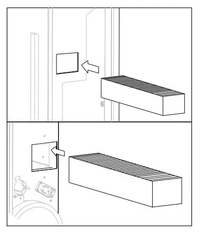 4. Remove the caps from both air ducts. Clean the duct entrances with a dry cloth or your vacuum cleaner. Also clean the insect mesh in the upper air duct. Place the