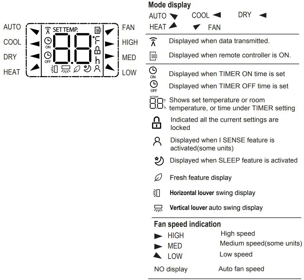 When the I SENSE function is activated, the remote display is actual temperature at its location. The remote control will send this signal to the air conditioner every 3 minutes interval until press the I SENSE button again.