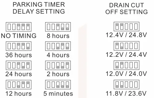 PARKING TIMER DELAY SETTING DRAIN CUT-OFF SETTING