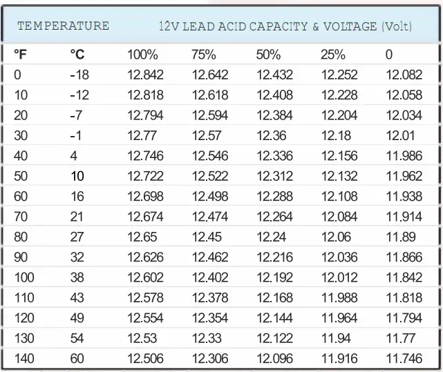 Please set the cut-or voltage value according to the temperature and how much of the battery’s capacity should be consumed before R5 Power cuts oj the powered output. Here is a chart for your reference (specifics may differ for dijerent batteries).