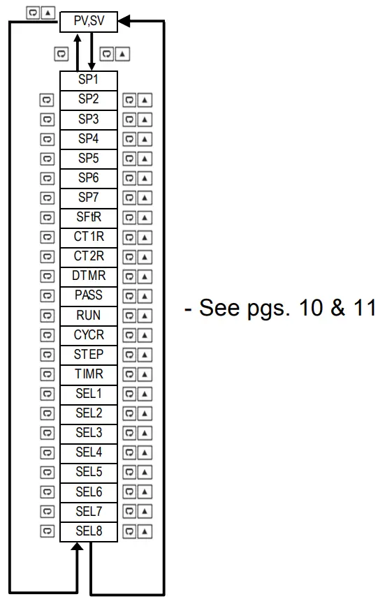 | 1. Basic Menu (Below) 2. Output Menu (pg. 6) *3. Alarm Menu *4. Event Input Menu | *5. User Select Menu *6. Communication Menu *7. Current Transformer Menu *8. Profile Menu (Ramp and Soak) |