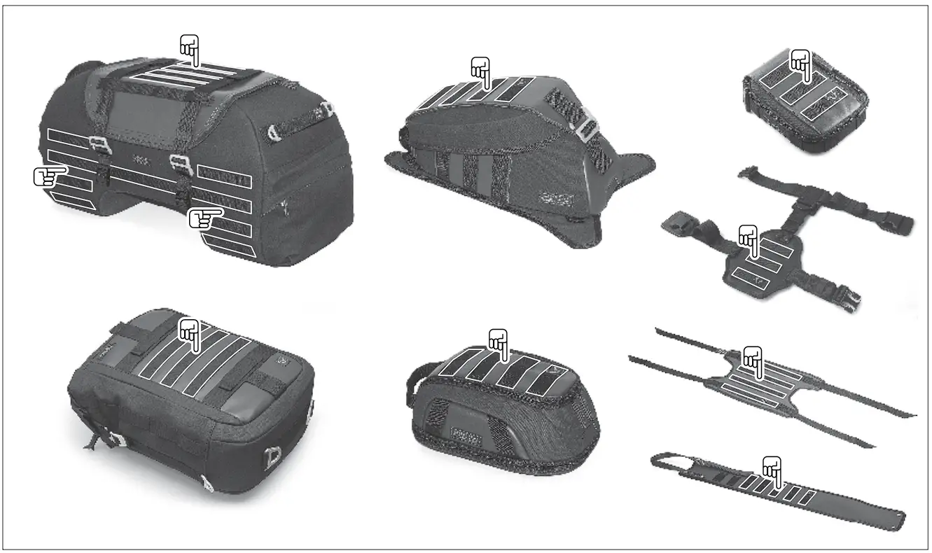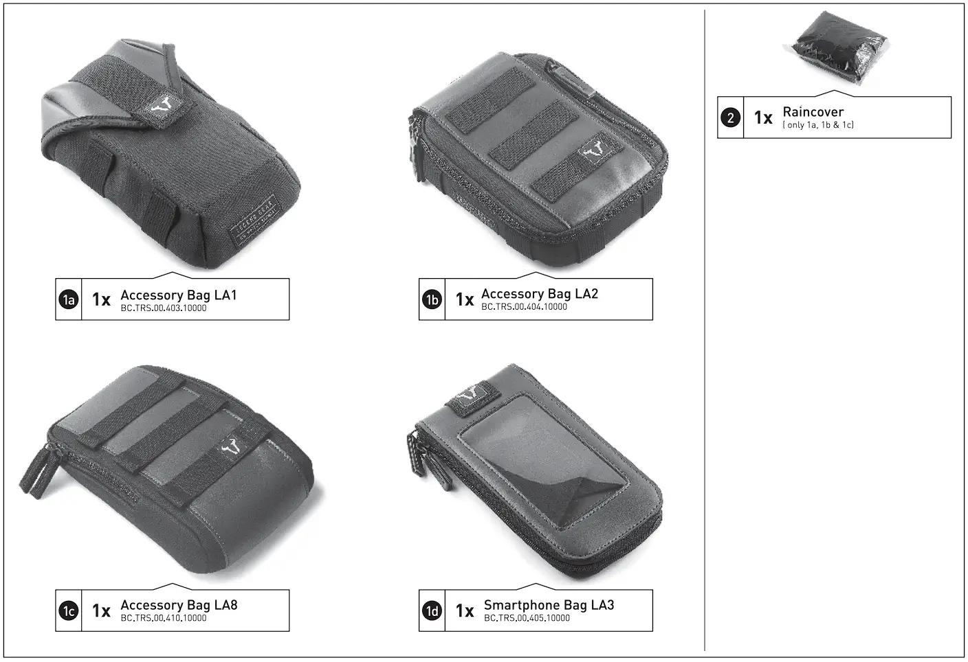 ATTENTION: Use the cell phone bag (1 d) only in combination with a tank bag or accessory bag LA2 /LAS, because the bag itself has no protection from moisture! Protect your smartphone with the rain cover of these bags from getting wet!