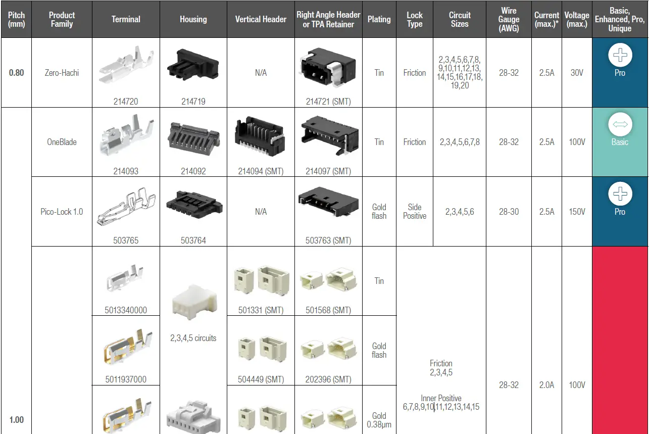 0.80 – 2.50MM PITCH
