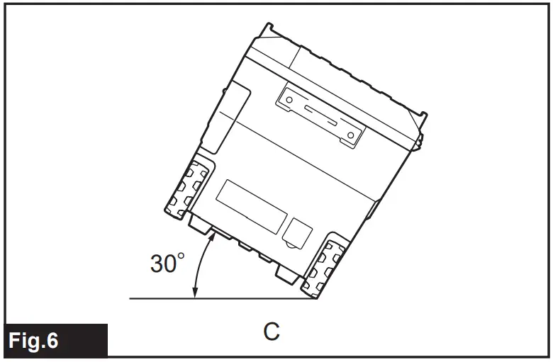 C) When the appliance get equal to or greater than 30° from level angle as shown C in the figure, the appliance shuts down and the temperature display shows “F1” for a while. It takes 3 minutes to restart after the appliance back in level position.