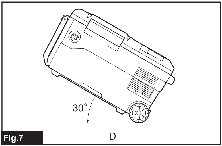 D) When the appliance get equal to or greater than 30° from level angle as shown D in the figure, the appliance shuts down and the temperature display shows “F1” for a while. It takes 3 minutes to restart after the appliance back in level position.