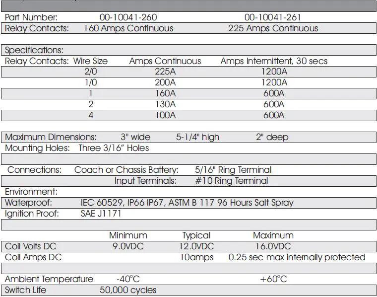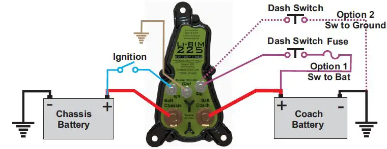 - Provides Emergency Start with Dash Switch. Optional power connection for existing applications, and ground connection to allow Emergency Start of either battery.