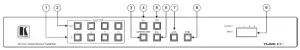| 4 | ALL Button | Press followed by an input button to connect the selected input to all outputs. For example, press ALL and then Input button # 2 to connect input # 2 to all the outputs. |
