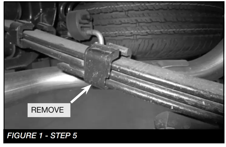- Locate the rear inner leaf spring clamp. using a cut-off wheel remove the clamp from the pack. SEE FIGURE 1