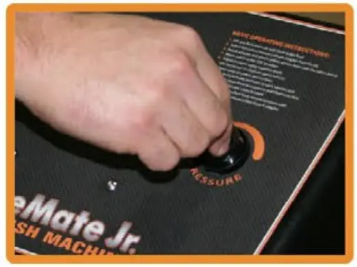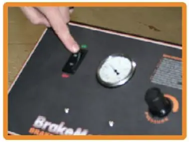 ![]() | Turn the machine on and use the pressure regulator to increase the pressure to the desired amount. A typical brake service should not require more than l 2psi (see manufacturer’s recommendation). | ![]() |