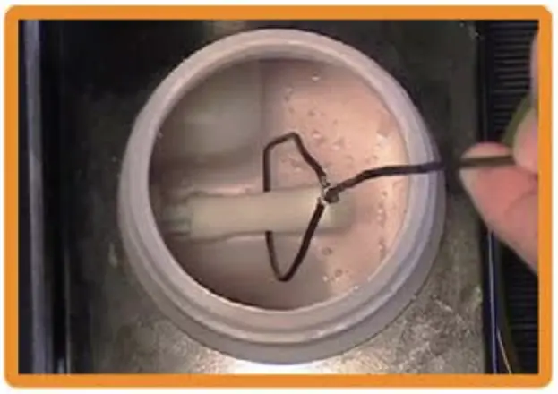 ![]() | Before draining, bypass the fluid level sensor located in the new fluid tank by pulling up with a wire loop. Connect the wand adapter to the yellow hose. Place in an appropriate fluid container and open the ball valve. Turn the machine on and turn the pressure knob until fluid begins to drain. | ![]() |