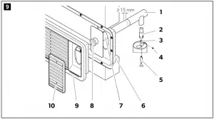 - Place the attachment for the flue duct (10) in the ventilation grille (9).