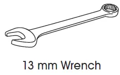 - Attach leg to the outside of tray with four 5/16 x 1/2″ bolts and four 13 mm