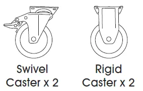 NOTE: Install rigid casters on one end of bottom tray and swivel casters with brakes on the opposite end.