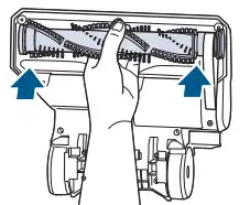 - Rotate brush roll into place and line up end caps.