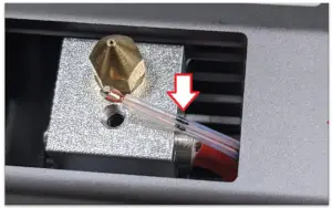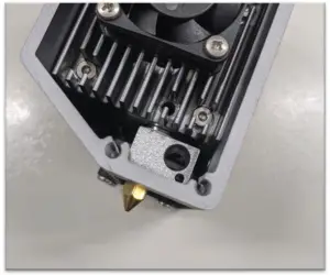 Use phillips head to remove the side covers on both side. You will find the side with the fan will have the cables leading to the heater and thermocouple for the unit, with a zip-tie to tie them together. Unsnip these so that they are separated, and pull the white thermocouple out of the metal hot end.