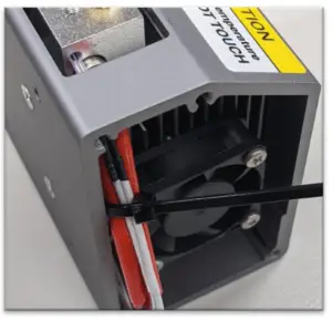 Place in the thermocouple and use your marked measure to get it right, then zip tie thermocouple lead to the heater lead to keep it secure in place. Keep in mind that through bending the lead, the positions will change, so try to get the best position with the zip tie loose before finally tightening and snipping the end.