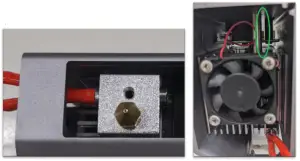 Once the red thermocouples are loose, you can use a small allen key to loosen the heat assembly from the motor assembly, then pull the heat block and thermocouple out.