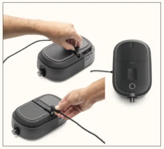 - Attach the power cord to the PAP machine.