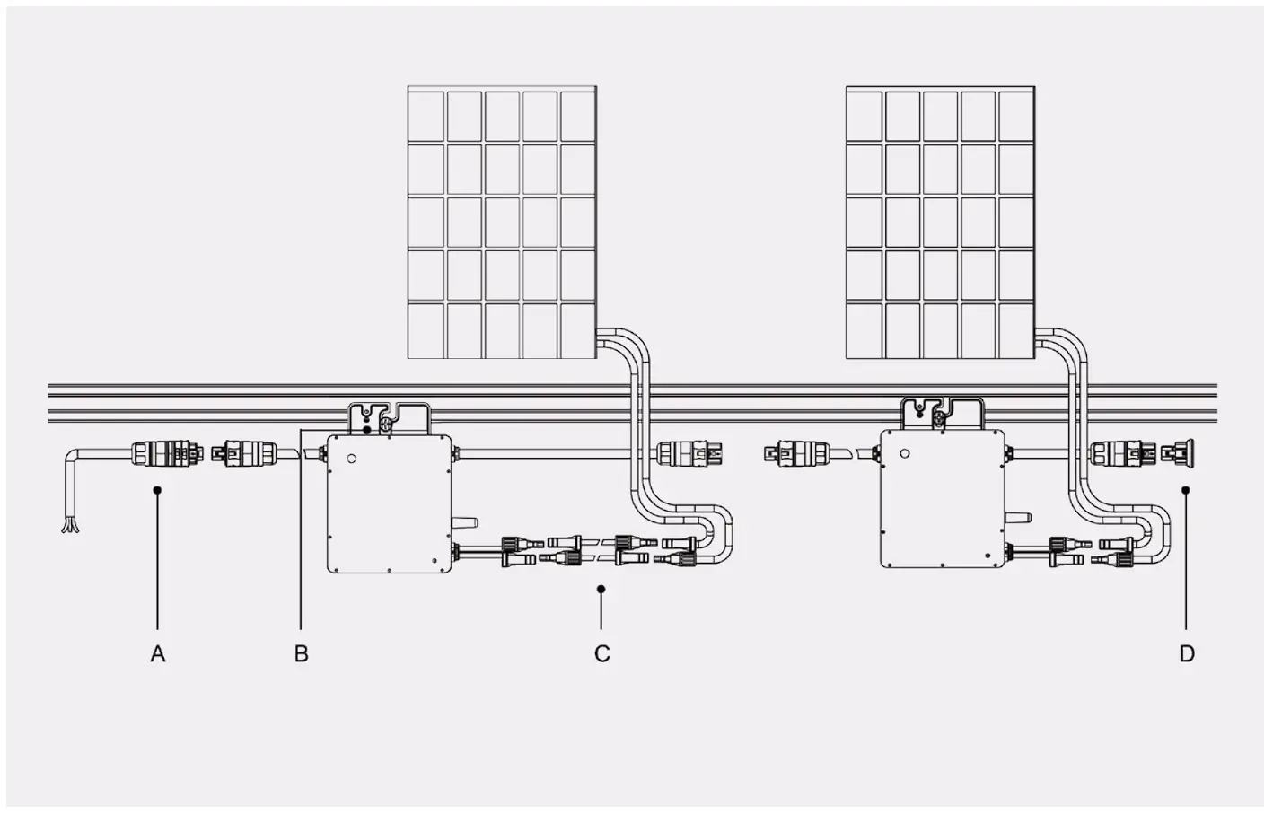 *Note: The length of AC cable on microinverter is around 1.21 m.Use AC extension cable if two microinverters are more than 1.21 m apart.