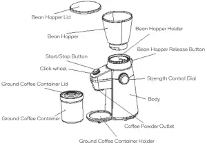 - Carefully unpack your coffee grinder and remove all packing materials.
