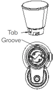 - To attach the Bean Hopper to the Bean Hopper Holder, align the Bean Hopper’s tab with the Groove on the Bean Hopper Holder. Turn the Bean Hopper clockwise until it is tightly locked into the Bean Hopper Holder.