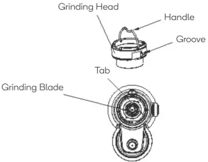 - To replace the grinding wheel back in position, place the grinding wheel into the grinding chamber by making the groove on the grinding wheel align with the tab on the grinding chamber, and then rotate the grinding wheel clockwise until it is fixed well in position.