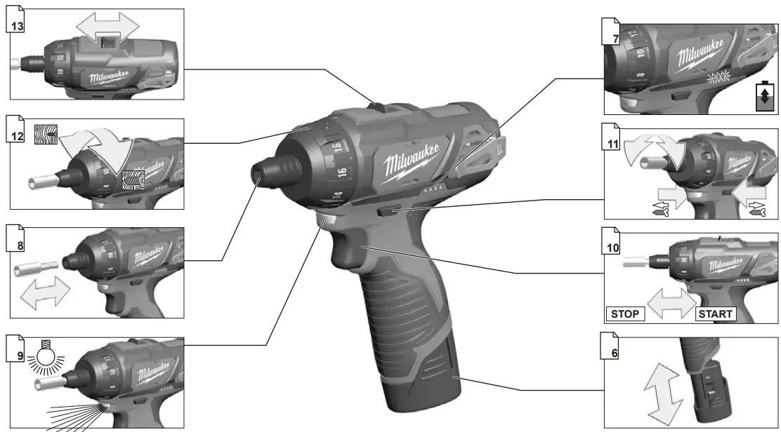 Use only Milwaukee accessories and spare parts. Should components need to be replaced which have not been described, please contact one of our Milwaukee service agents (see our list of guarantee/service addresses).