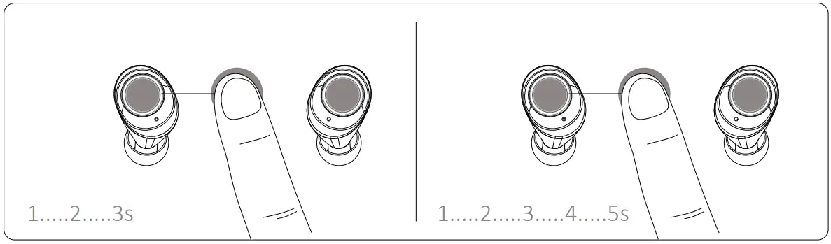 3.Automatic power off: The earbuds w ill tu rn off automatically after 5 minutes if they have not paired with any device via Bluetooth. When in low battery, they will power off automatically as well.