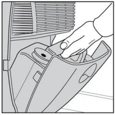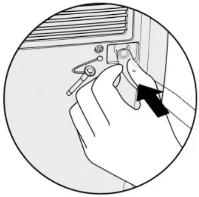 - Pull out the permanent drainage bung from the rear of the unit. This should then be pushed in and out a few times to remove any build up inside the drain tray (have a cloth or other absorbent material handy to catch the water). The bung should then be pushed fully home to reseal the drain tray.