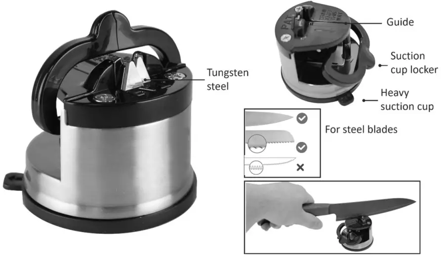 This device is designed to sharpen kitchen knives, pocket knives or other metal or ceramic knives.