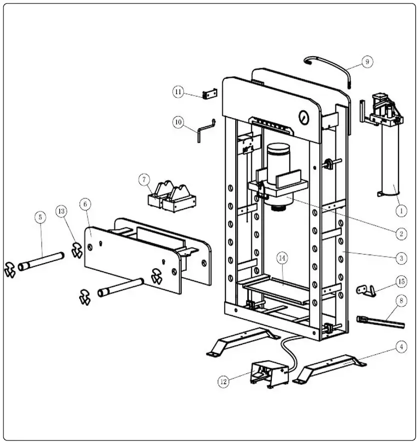 ✘ DO NOT operate the press if any parts are missing as this may cause failure and/or possible personal injury.