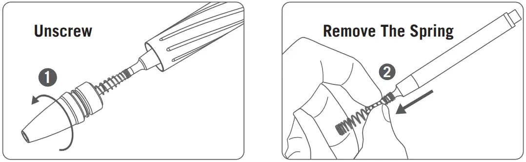a. Unscrew the tip, take out the refill and remove the spring from the refill.